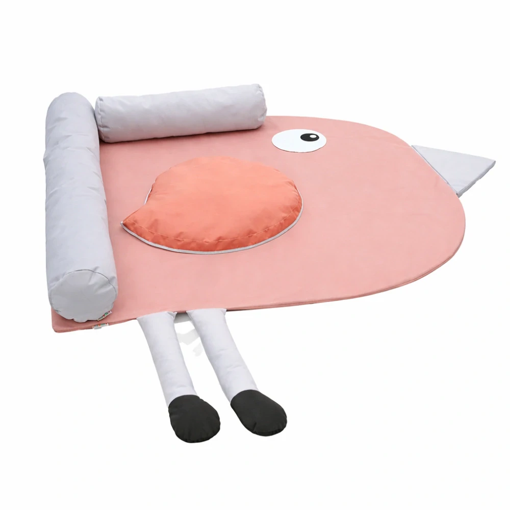 Podložka je vyplnená kvalitnou penou, ktorá poskytuje dostatočnú mäkkosť aj oporu pri sedení, ležaní alebo hre. Povrch tvorí odolná polyesterová tkanina Loca, ktorá je príjemná na dotyk, vhodná na intenzívne používanie a ľahko sa udržiava.