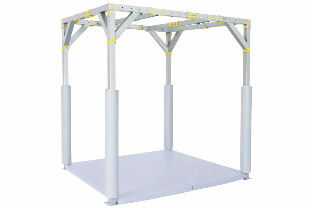 Stabilná a pevná kovová konštrukcia je vyrobená vo forme kabíny - stojana Kabína je vybavená dvomi pohyblivými nosníkmi, umožňujúcimi inštaláciu zariadení pre senzorické integračné terápie.