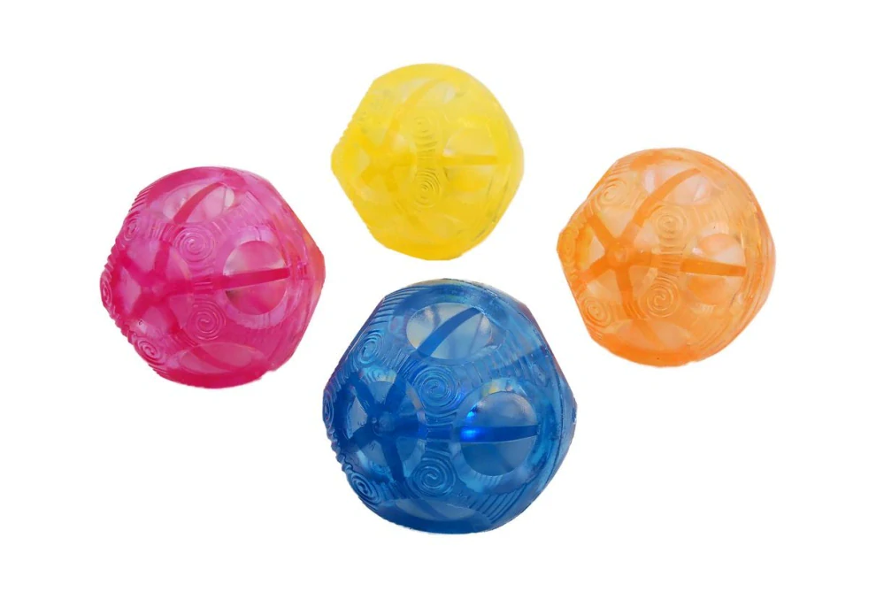 Sada farebných senzorických loptičiek, ktoré svietia pri odrazení od zeme. Vďaka nepravidelnému povrchu sa odrážajú pod rozličným uhlom. Nevyžadujú si batérie.