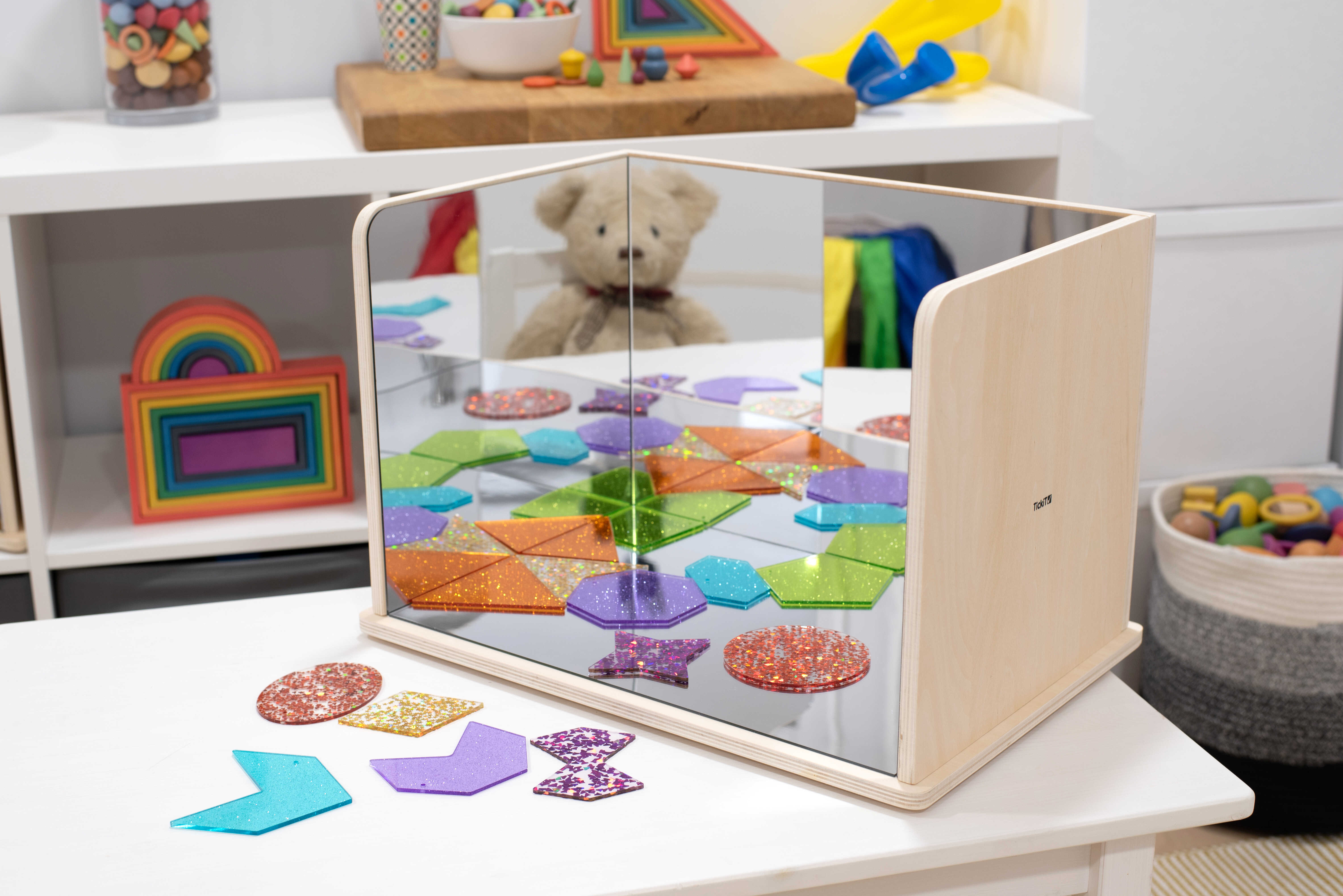 Zrkadlo je vhodné na small world play, skúmanie detailov alebo experimentovanie so zrkadlovými efektmi.