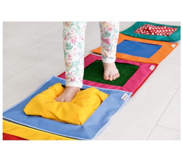 Taktilný chodník je senzorická pomôcka určená na rozvoj hmatu, motoriky a stimuláciu chodidiel. Sada obsahuje 6 štvorcov s rôznymi povrchmi a výplňami, ktoré poskytujú pestré zmyslové podnety.