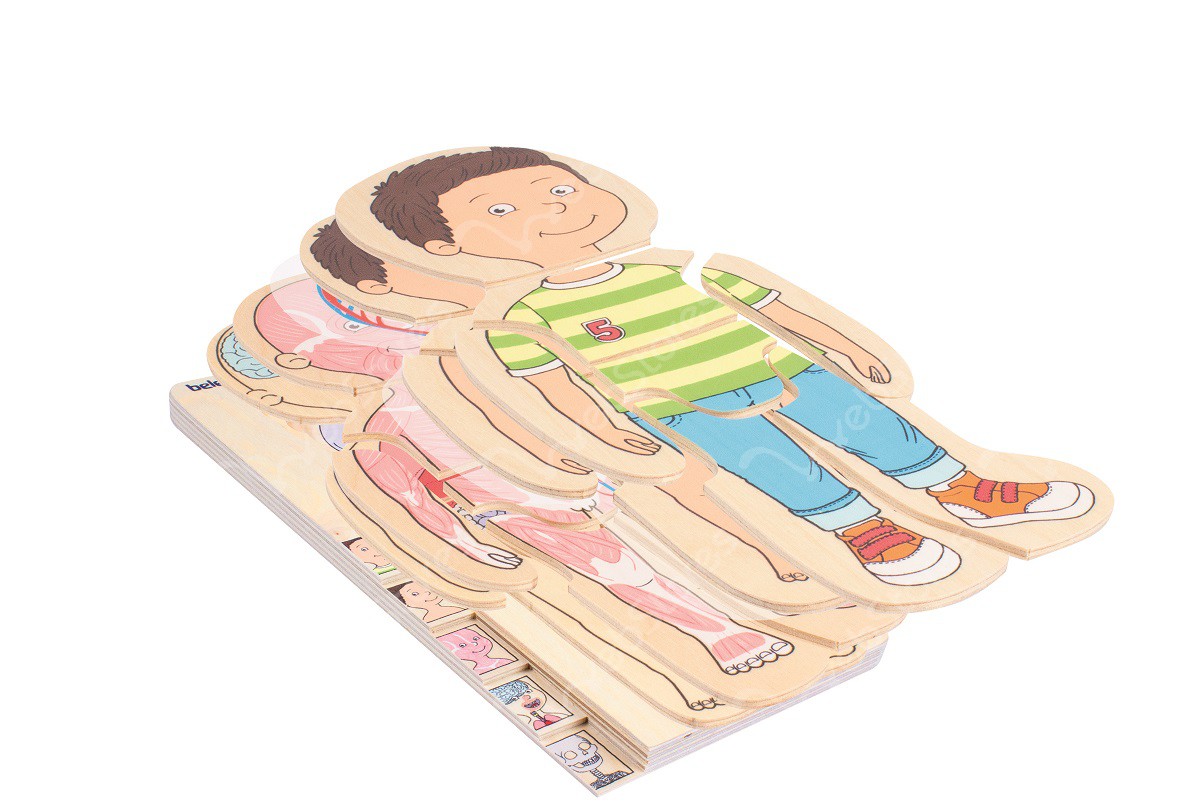Puzzle z lakovanej preglejky znázorňujú skladbu tela dievčaťa a chlapca.