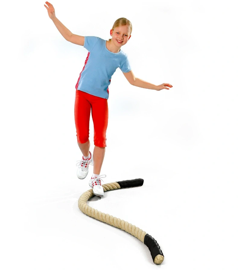 Balančné lano môžete na podlahe rozložiť do rôznych tvarov – rovno, do oblúkov či vlnoviek – a jednoducho tak meniť náročnosť cvičenia. Je vhodné do telocviční, škôl, materských škôl, športových klubov aj na terapeutické využitie.