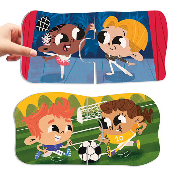 Hra obsahuje 18 dvoj kusových puzzle, ktoré sú vyrobené zo silného, veľmi odolného a kvalitného hrubého kartónu. Rozmery puzzle: 17 x 8.5 cm