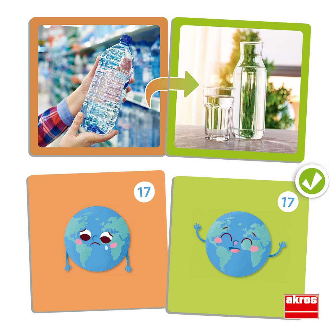 Hra sa skladá zo 34 kariet vyrobených z hrubého, pevného, veľmi vysoko kvalitného kartónu. Karty obsahujú veľké obrázky zo skutočného života, ktoré po spárovaní zobrazujú udržateľnejšie alternatívy, ktoré nám pomôžu chrániť planétu.