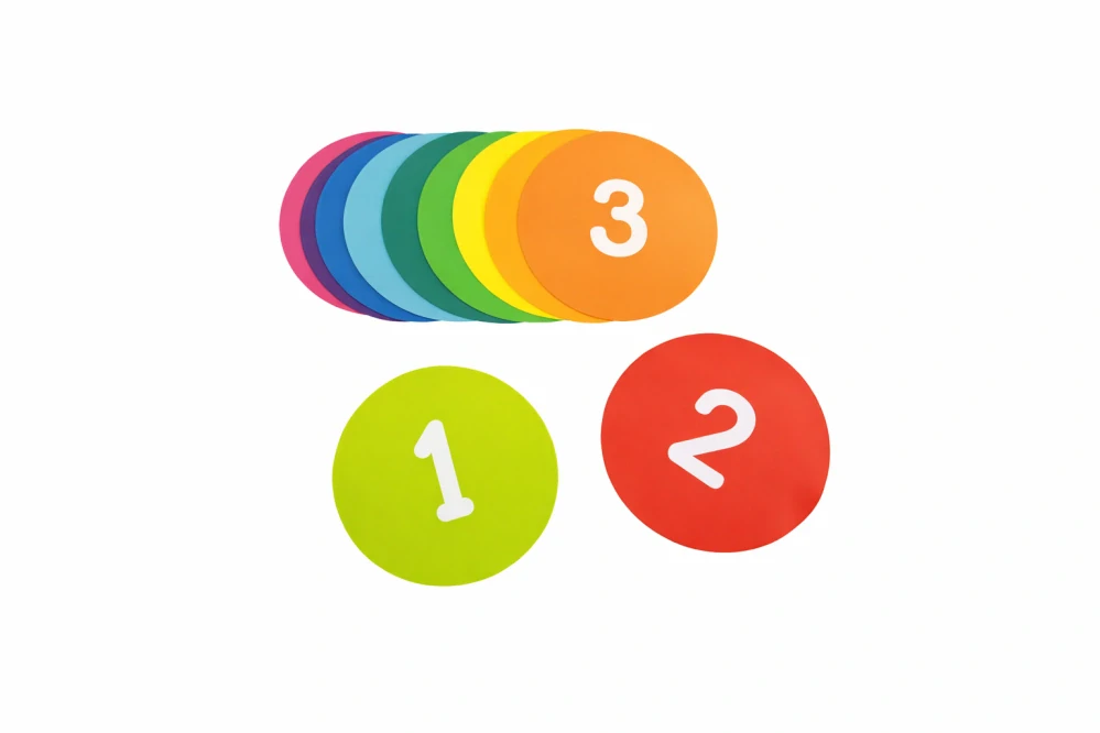 Sada okrúhlych podložiek na podlahu je ideálnou pomôckou na hravé učenie čísel, rozvoj pohybových zručností a koordinácie. Podložky sú vyrobené z kvalitnej termoplastickej gumy a každá z nich je označená číslom od 1 do 10, vďaka čomu deti prirodzene spoznávajú čísla a učia sa počítať.