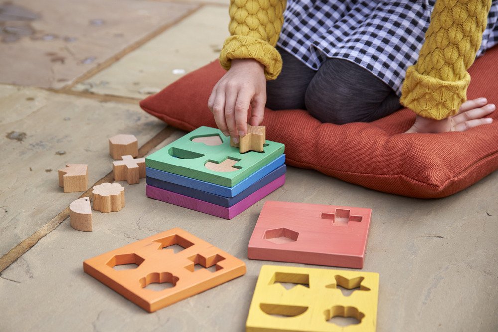Tvary sú väčšie, dobre uchopiteľné a vhodné aj pre menšie deti. Skladačka umožňuje kombinovať viac aktivít – vkladanie, triedenie, skladanie aj voľnú hru.