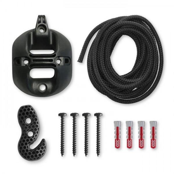 Sada obsahuje jeden kruhový hák so skrutkovou kotvou Fischer, jedno lano (dĺžka 3 m) a jednu karabínu. Tieto závesné body sú vhodné pre drevený aj betónový strop.