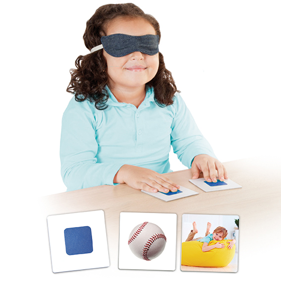 Dotyková hra rozvíja hmat rozlišovaním rôznych textúr, ktoré deti musia priradiť k fotografiám predmetov. Pomáha rozvíjať vizuálno-hmatové asociácie. V prvom kroku si deti vyberú jednu hmatovú kartu a popíšu, aký je jej povrch, napríklad hladký/ drsný, teplý/ studený, tvrdý/ mäkký. Keď sa dieťa zoznámi s povrchmi, vyhľadá dve karty s fotografiami, na ktorých sa nachádza konkrétny povrch. Po rozdelení kariet na polovicu môžu túto aktivitu aj dve deti súčasne. Ďalšou možnosťou hry je prekryť dieťaťu oči maskou. Jeho úlohou je po hmate spárovať hmatové karty.