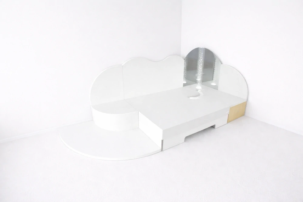 Hudobná vodná posteľ je kompletný rohový modul, ktorý kombinuje komfort vodného matraca, zmyslovú stimuláciu a hudobný zážitok. Táto zostava je ideálna pre snoezelen miestnosti, terapeutické priestory alebo relaxačné zóny, kde podporuje uvoľnenie a celkovú pohodu používateľov.