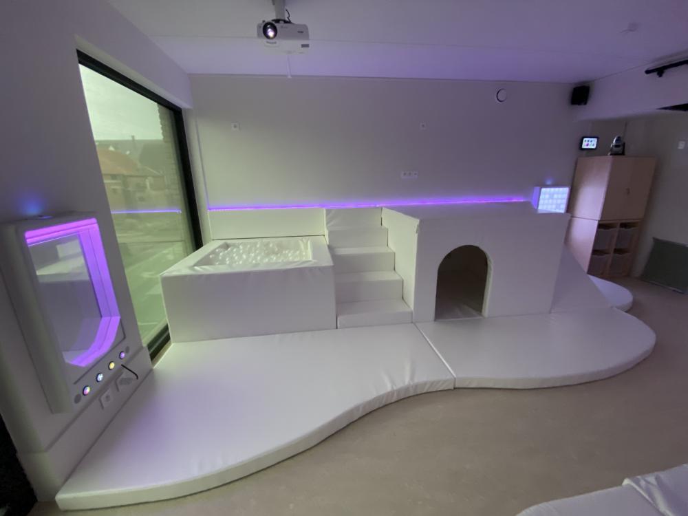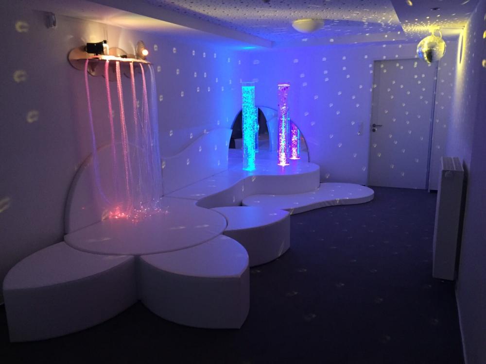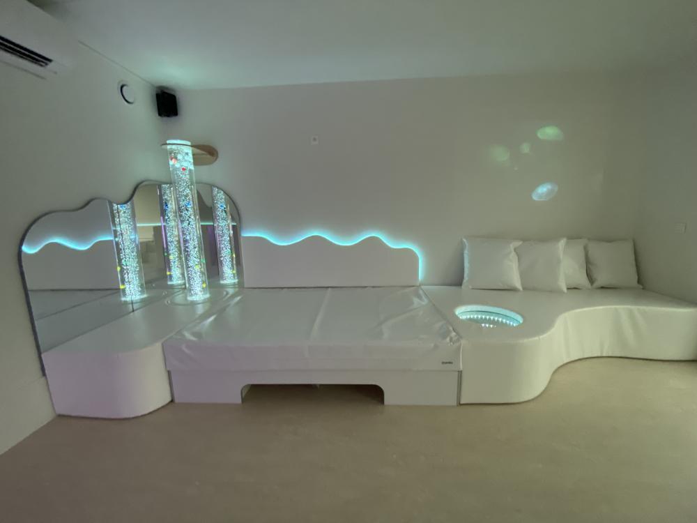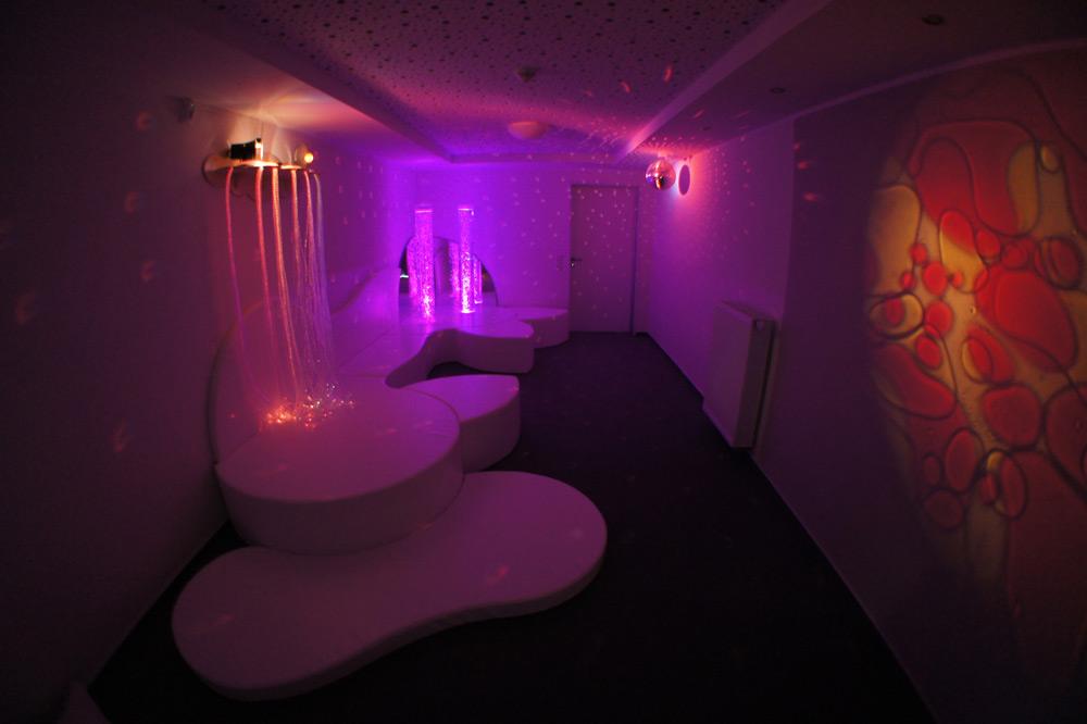INTERAKTÍVNA IZBA- Táto zmyslová miestnosť zaisťuje optimálnu relaxáciu a zmyslovú stimuláciu! Vďaka rôznym možnostiam sedenia a ležania si klient, ktorý využíva priestor, môže vybrať medzi tým, kde si chce sadnúť alebo ľahnúť. Oddýchnite si na vodnej posteli pri bublinkovej jednotke, hrajte sa v bazéne s loptičkami alebo zostaňte v mäkkej chatke v izolácii od všetkého!