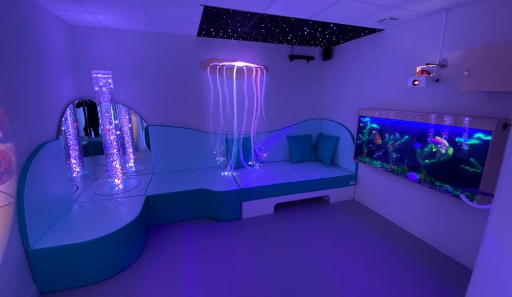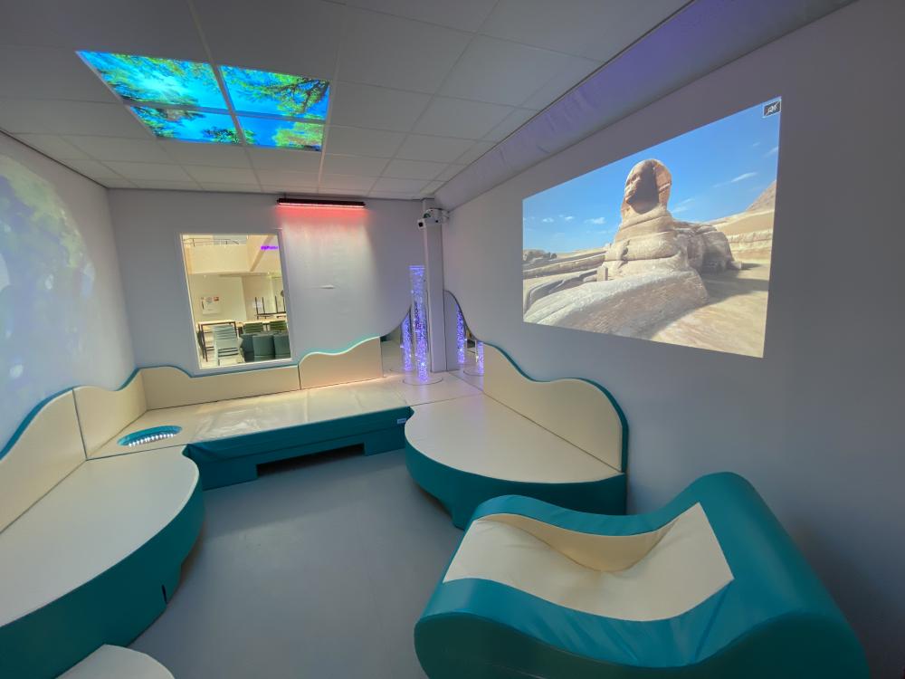 VIACZMYSLOVÁ IZBA s projektorom - relaxácia kedykoľvek počas dňa..... so zmyslovou miestnosťou je to možné. Vďaka príjemným vibráciám a bublinám z bublinkovej trubice, zaujímavým tvarom v projekcii senzorického projektora a mnohým ďalším svetelným efektom v miestnosti je umožnené všetko pre to, aby relaxácia alebo stimulácia bola v senzorickej miestnosti možná pre každú cieľovú skupinu!