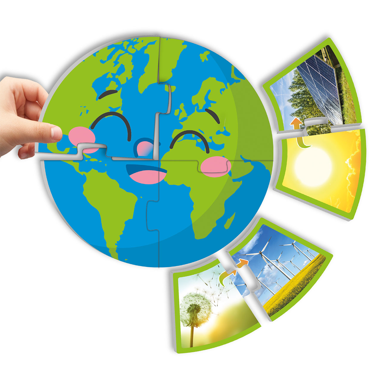 Kartičky sú ilustrované obrázkom a tvoria dve planéty: šťastná planéta a smutná planéta. Šťastná planéta je doplnená šiestimi pármi kartičiek so zeleným rámom. Obsahujú skutočné obrázky obnoviteľných zdrojov energie a ich premeny: