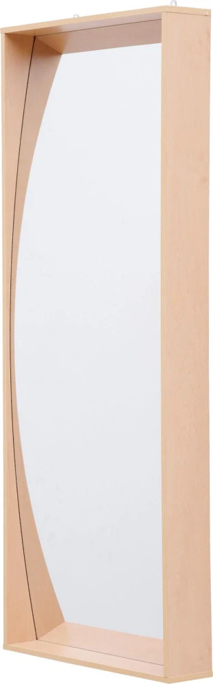Zrkadlo je vyrobené z akrylového, nerozbitného materiálu, ktorý zaisťuje maximálnu bezpečnosť pri používaní. Stabilný rám z laminovanej dosky v dekore brezy dodáva zrkadlu elegantný a prírodný vzhľad. Zrkadlo je určené na montáž na stenu – montážny materiál je súčasťou balenia.
