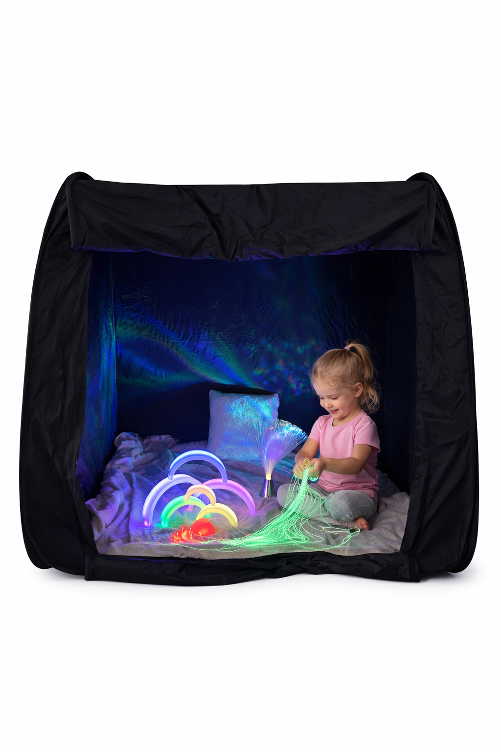 - tmavé miestnosti (black sensory rooms) sú ideálne pre aktívnu zmyslovú stimuláciu a prácu so svetlom