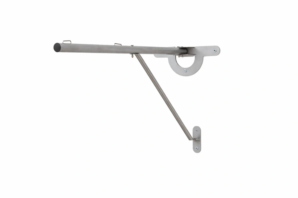Vďaka sklopnému mechanizmu je možné držiak po skončení cvičenia jednoducho zložiť k stene bez nutnosti demontáže, čím sa výrazne šetrí priestor. Robustná konštrukcia zabezpečuje vysokú stabilitu a bezpečné používanie pri každodennej terapii aj rehabilitácii.