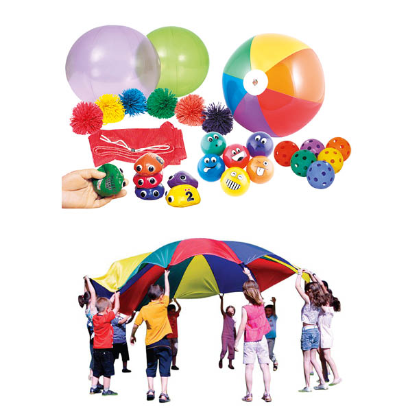 Táto súprava je ideálnym doplnkom pre hru s padákom, známym aj ako balónová plachta. Obsahuje rôzne lopty s veľkosťou od 7 do 22 cm, ktoré v kombinácii s padákom s priemerom 180 cm vytvárajú vizuálne atraktívny a dynamický efekt.