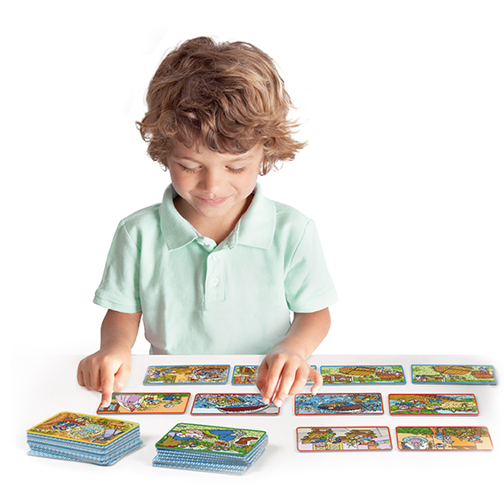 Vypočujte si 6 klasických rozprávok a usporiadajte karty podľa deja. Každý príbeh má inak farebný rámec, čo pomáha rozvíjať zmysel pre čas a chronologické vnímanie.