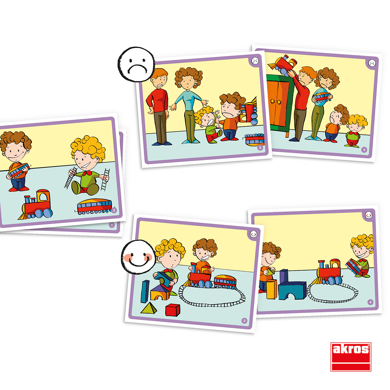Obsahuje 7 jednoduchých príbehov, v ktorých sú uvedené dva spôsoby vyriešenia rôznych sporných situácií a poukazuje sa na dôsledky prijatia správneho alebo nesprávneho rozhodnutia. Dej každého príbehu sa rozvíja na 4 kartičkách, z ktorých 2 kartičky sú obojstranné a navrhujú riešenie s dvoma možnými koncami.