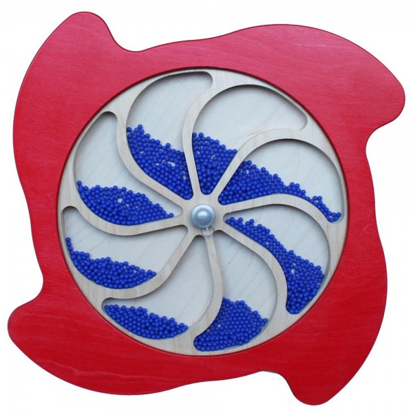 Každý panel obsahuje drevený kolík, ktorý je možné pripevniť na stenu, aby sa panel mohol jemne otáčať. Korálky vydávajú zvuk dažďovej sprchy.