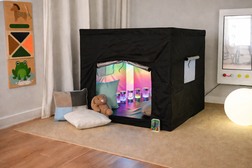 Stan vytvára útulnú a kontrolovanú zónu, ktorá pomáha znižovať stres, podporuje koncentráciu a umožňuje lepšie spracovanie zmyslových podnetov. Je vhodný pre školy, škôlky, terapeutické centrá aj domáce využitie.