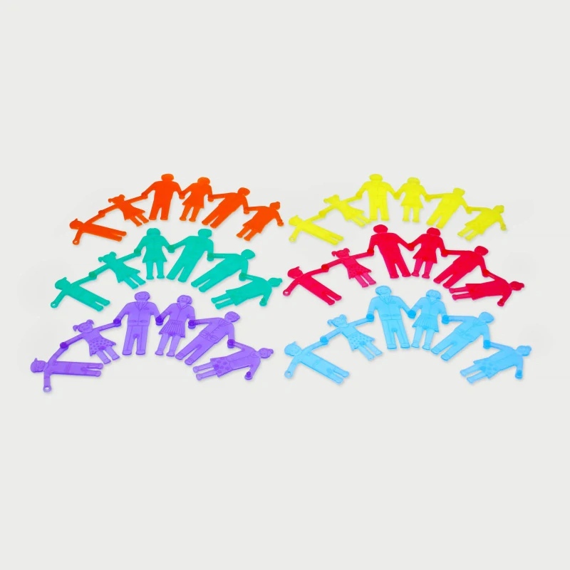 Linking People sú realistické silikónové figúrky rodiny, ktoré možno spájať za ruky a kreatívne kombinovať. Sú vyrobené z mäkkého, priehľadného silikónu a každá postavička má jedinečnú farbu, vďaka čomu sú všetky ľahko rozlíšiteľné a vizuálne atraktívne.