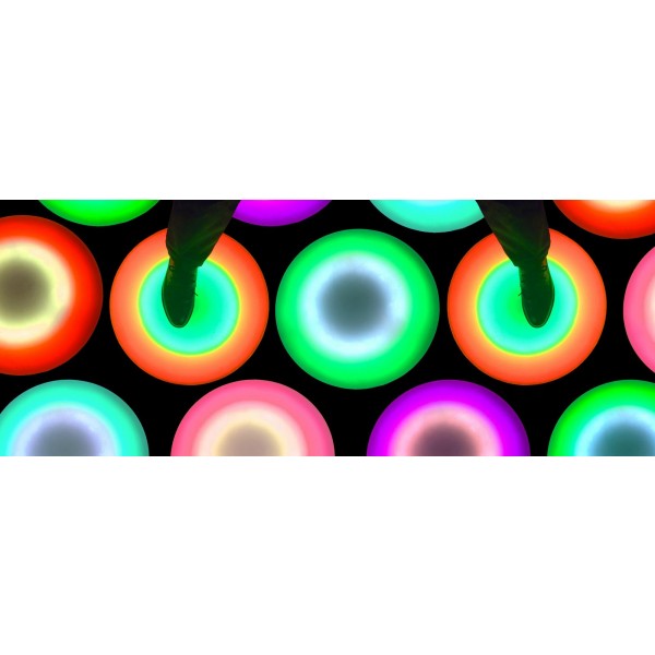 Táto interaktívna podložka využíva najmodernejšie technológie. Svetlo sa zastaví pri určitej farbe, keď je vaša noha odobratá z dlaždice. Perfektné 3D efekty, citlivé na dotyk s rýchlou odozvou. Nastaviteľný jas, úspora energie a šetrnosť k životnému prostrediu.