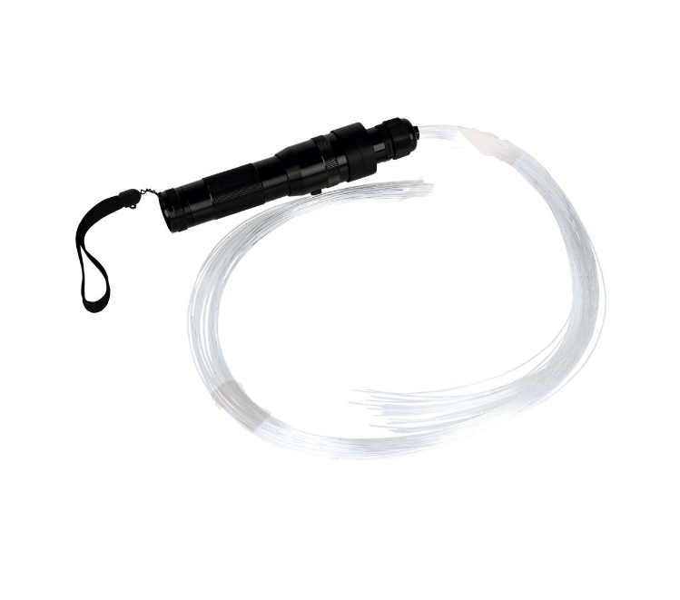 Vlákna svetlovodov doplnené hliníkovým úchytom, pre pozorovanie svetelných efektov.