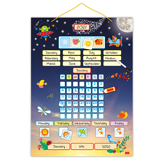 Štruktúra kalendáru, ktorá sa dá intuitívne rozpoznať, uľahčuje aj tým najmenším deťom porozumieť časovej postupnosti, od najvšeobecnejších časových údajov (rok, ročné obdobie) až po najkonkrétnejšie (dni v týždni a dnešný dátum). Štruktúra pomáha deťom vytvoriť si jasnú predstavu o tom, z akých časových období sa skladá rok.
