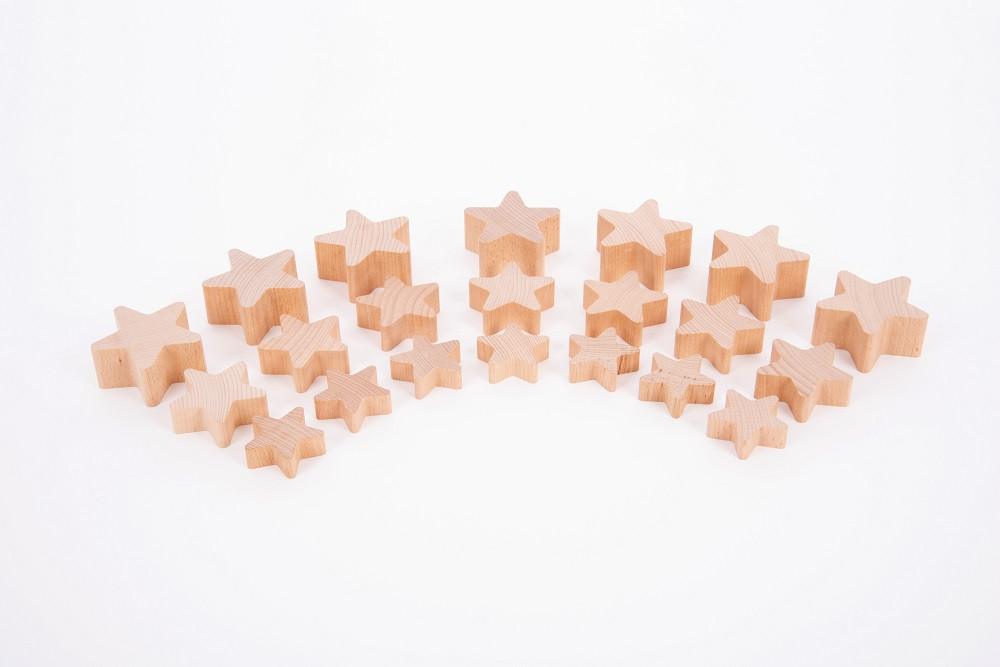 V každej sadke nájdete 7 hviezd vo 3 rôznych veľkostiach (43 mm, 53 mm, 62 mm) a hrúbkach (15 mm, 20 mm a 30 mm).