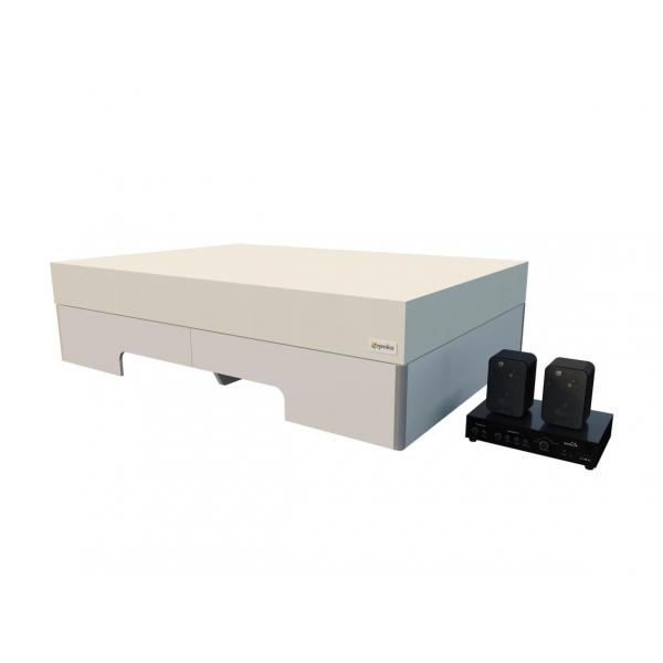 - biela drevená platforma s integrovanými reproduktormi